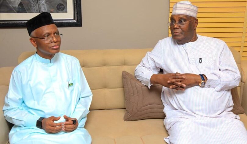 Former Vice President Atiku Abubakar on Saturday paid a condolence visit to former Kaduna State Governor Nasir El-Rufai at his Abuja residence following the death of his mother.