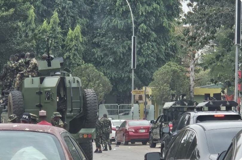 Eyewitnesses around the commission’s office reported a strong presence of Nigerian Army personnel. Armoured vehicles were seen positioned at strategic points.