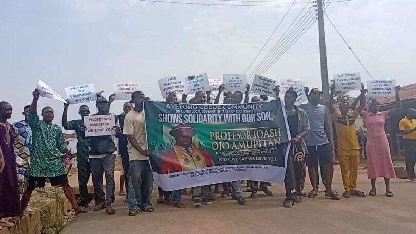 The protesters, drawn from various youth and civil society groups, marched across major parts of the community, declaring support for the electoral body’s independence and solidarity with Joash Ojo Amupitan, a Senior Advocate of Nigeria and the chairman of the commission.