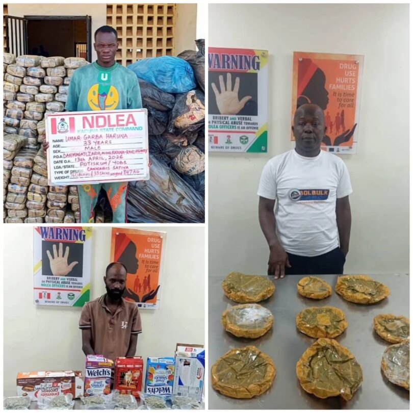 The NDLEA Chairman, retired Brig. -Gen. Buba Marwa, has commended the officers and men of MMIA, Edo, Delta, Cross River, Kaduna, and Lagos Commands of the Agency for the arrests and seizures.