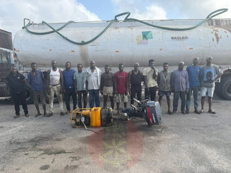 The Army said the suspects were apprehended while siphoning petroleum products and connected a pipeline from the high sea to a tanker hidden in a bush.