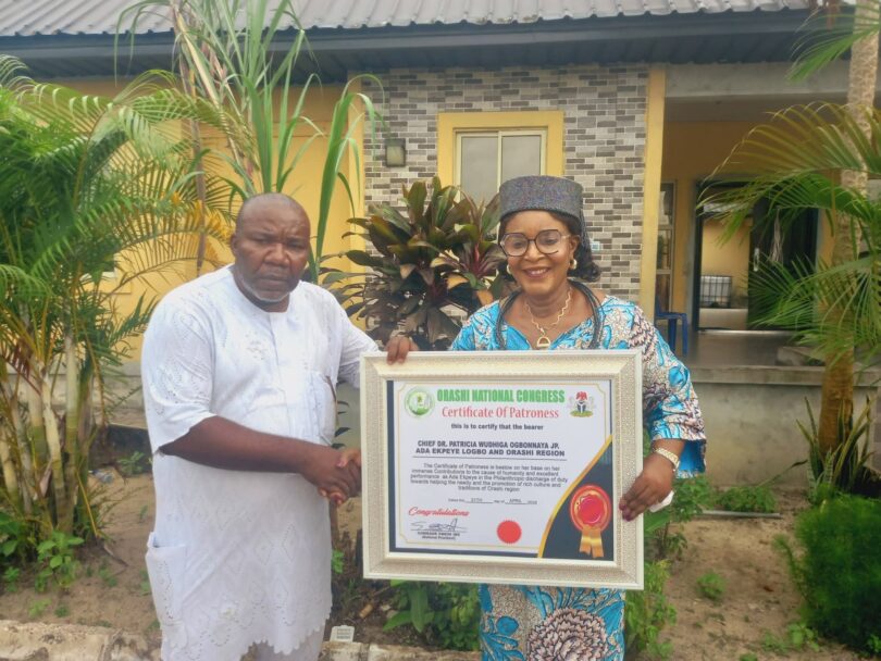 Notable Niger Delta socio-cultural group, the Orashi National Congress (ONC), under the leadership of its President General, Amb Comrade Emeni Ibe (JP AP), has honoured High Chief Dr Patricia Wudhiga Ogbonnaya as Patroness to the Congress on during a courtesy visit on 21st April, 2026.