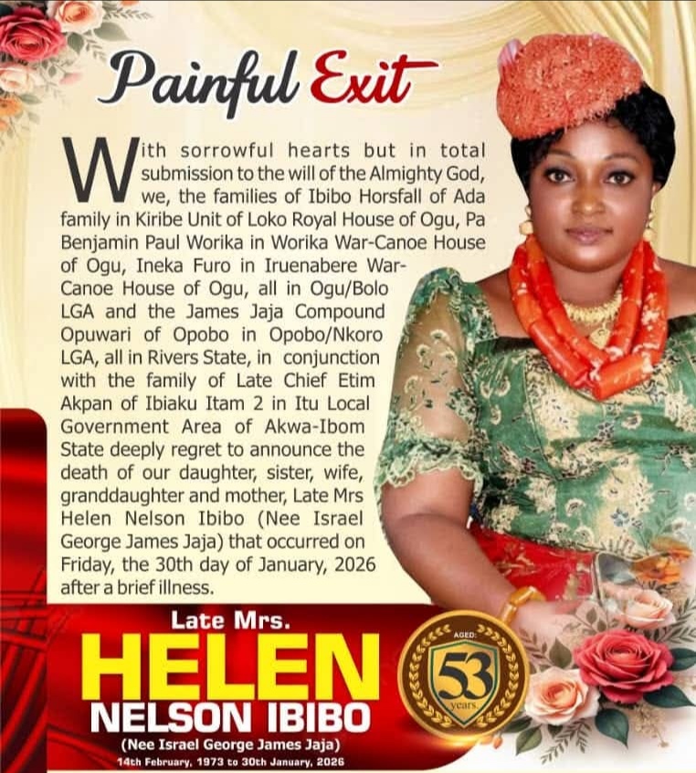 In his condolence message to Amb. Elder Nelson Horsfall Ibibo, the ONC PG said, “I wish to use this medium on behalf of my family and the Orashi National Congress to commiserate with you and your family over the sad passing of your beloved wife and companion”.