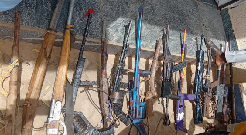 Shaffa said Items recovered during the raid included seven locally made Dane guns, an AK-47 magazine, a military uniform, cutlasses, and substances suspected to be Indian hemp, and the suspects have since been charged in court.